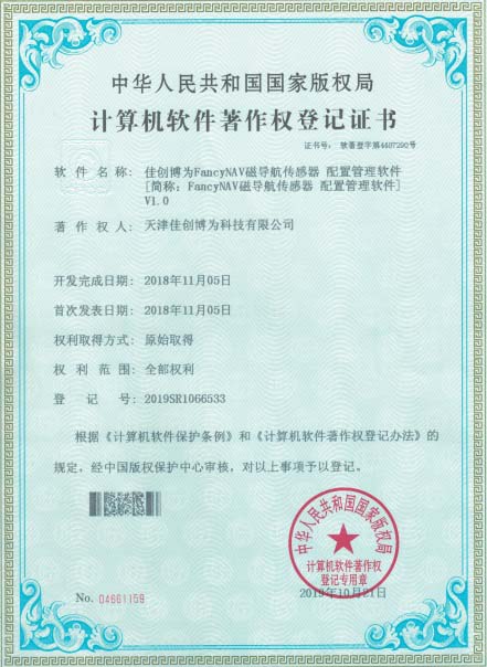磁導(dǎo)航傳感器配置管理軟件著作權(quán)登記證書