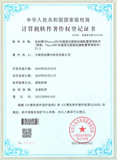 FancyDRV雙通道無刷驅(qū)動器軟件著作權(quán)登記證書