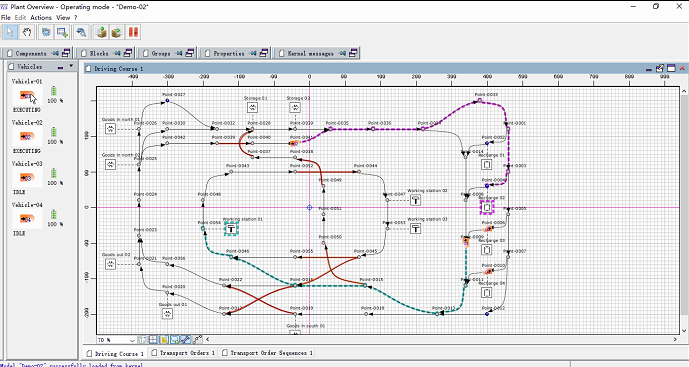 2.交通管制:根據(jù)每臺AGV當(dāng)前的運(yùn)行狀態(tài)實時地進(jìn)行交通管制,防止AGV車輛發(fā)生碰撞以及路線沖突。通常會跟路徑規(guī)劃配合使用。